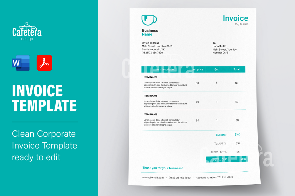 Invoice Template in Microsoft Word (& PDF) in US Letter
